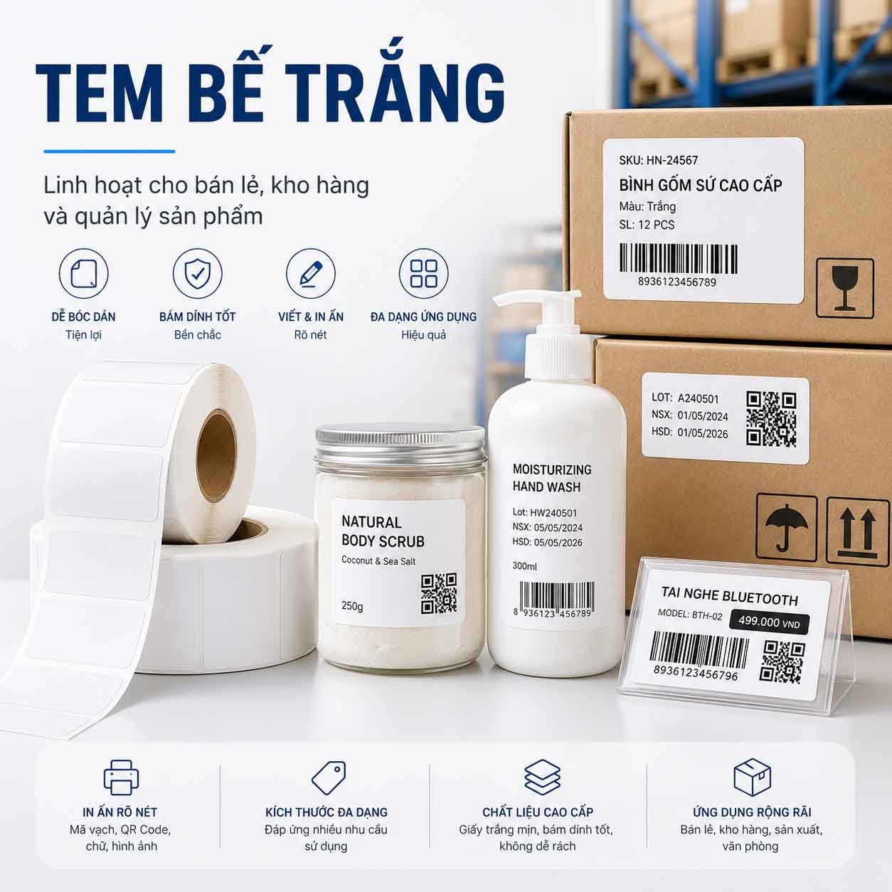 Từ vật liệu mặt, keo, ribbon đến công nghệ in và bế khuôn, mọi quyết định đều gắn với điều kiện vận hành của sản phẩm.