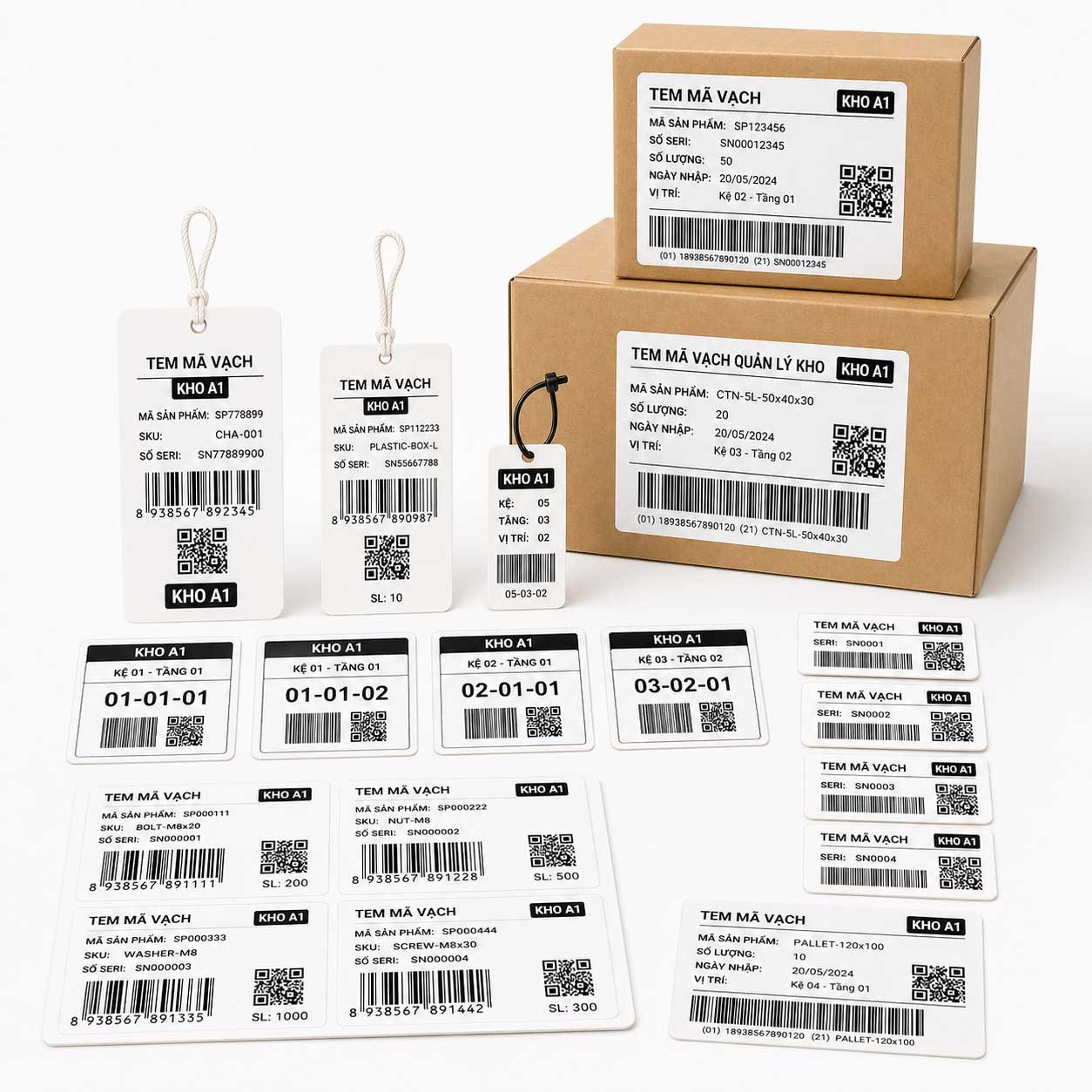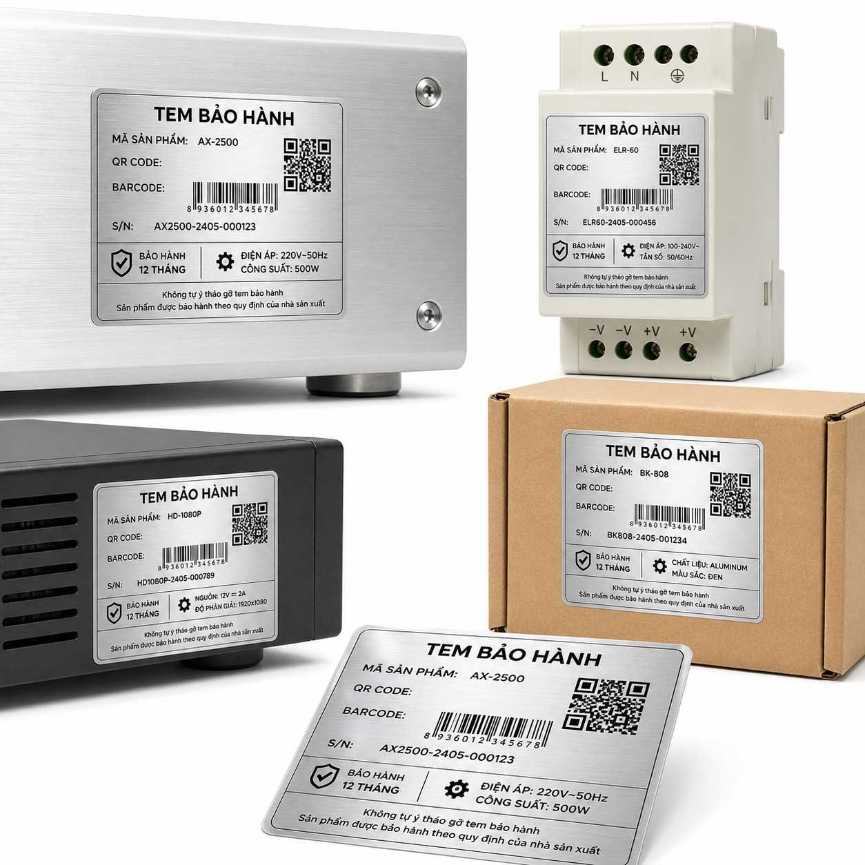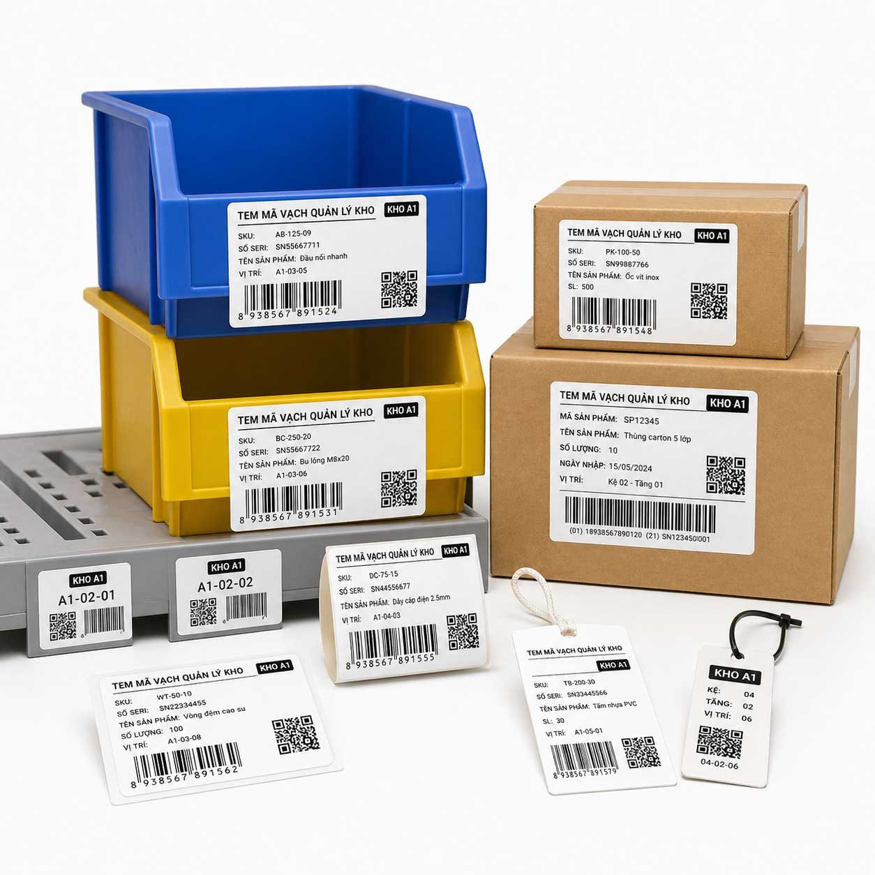 Phù hợp nhãn máy móc, thiết bị điện tử, tài sản cố định và môi trường cần nhận diện lâu dài.